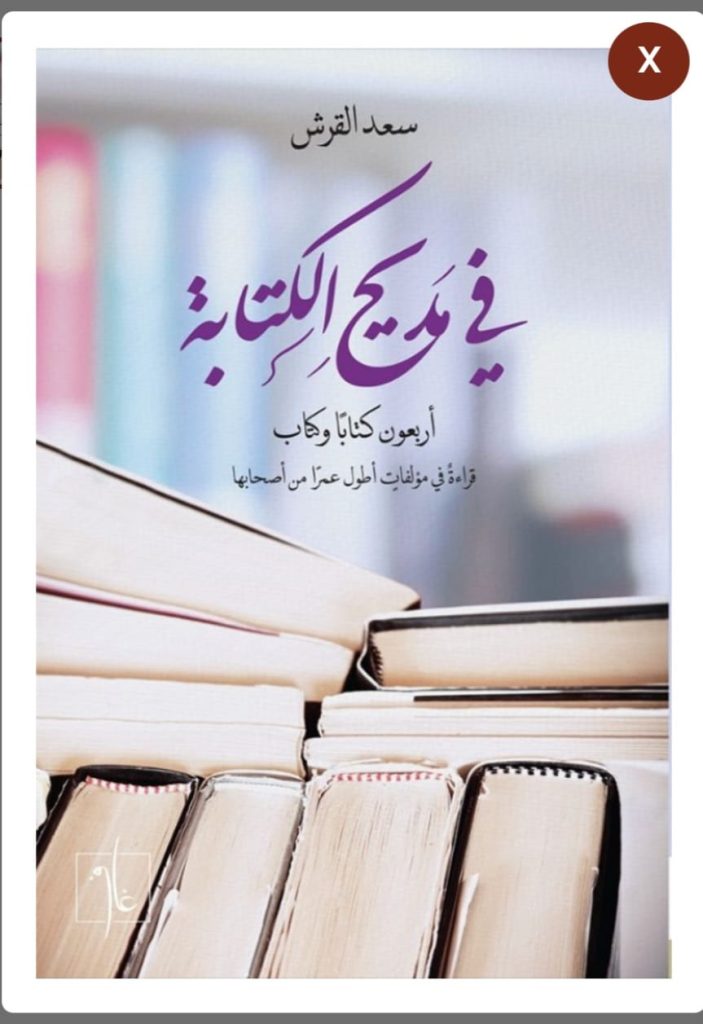 وإذا كان الناظم الكتابة بماهي تعبير، فإن المؤلف سعد القرش حدد اشتراط التناول في كلمة “مديح”. والغاية