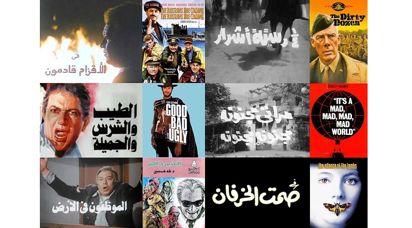 ناهيك عن أفلام أمريكية كفيلم (Bathing Beauty أو الجمال السابح، الذى عُرِض تجاريًا فى مصر بعنوان “السابحات الفاتنات” – 1944) فى (الحموات الفاتنات – 1953)، و(الكمساريات الفاتنات – 1957)، (How to Steal a Million أو كيف تسرق مليون – 1966) فى (كيف تسرق مليونير – 1968)، (It’s a Mad Mad Mad Mad World أو إنه عالم مجنون، مجنون، مجنون، مجنون – 1963) فى (مراتى مجنونة، مجنونة، مجنونة – 1968)، (The Dirty Dozen أو الدستة القذرة، الذى عُرِض تجاريًا فى مصر بعنوان “دستة أشرار” – 1967) فى (ربع دستة اشرار – 1970)، (Dances with Wolves أو يرقص مع الذئاب، الذى عُرِض تجاريًا فى مصر بعنوان “الرقص مع الذئاب” – 1990) فى (الرقص مع الشيطان – 1993)، (The Silence of the Lambs أو صمت الحملان – 1991) فى (صمت الخرفان – 1995)، (The Sixth Sense أو الحاسة السادسة – 1999) فى (الحاسة السابعة – 2005)، (Mr. & Mrs. Smith أو السيد والسيدة سميث؛ المنطوق بالعربية “مستر أند مسز سميث – 2005) فى (مستر أند مسيز عويس – 2012)، سلسلة Ocean أو أوشن (Ocean’s 11 – 2001)، (Ocean’s 12 – 2004)، (Ocean’s 13 – 2007)، فى (أوشن 14 – 2016). أو عناوين مسلسلات أمريكية مثل (Teenage Mutant Ninja Turtles أو سلاحف النينجا المتطفرين المراهقين، الذى عُرِض فى التلفزيون المصرى القومى منتصف التسعينيات بعنوان “سلاحف النينجا” – 1987: 1996) فى (السلاحف – 1996).