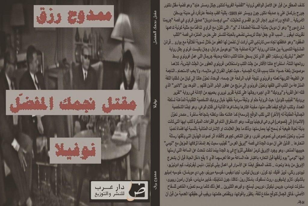 ينشر موقع الكتابة الثقافي نوڨيلا “مقتل نجمك المفضّل” والصادرة مؤخرًا عن دار عرب للنشر والتوزيع.