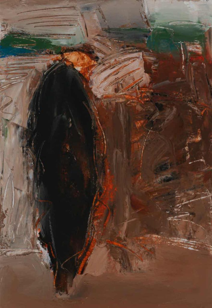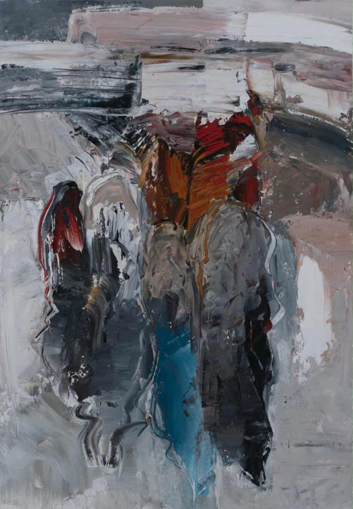 ولوحاته، التي تتخذُ شكلَ التعبيرِ التجريديِّ، واضحةٌ فيها “نُعُومة الملامح” للنساء؛ كأنَّهُن يودِّعن مواطنهن الأولى، ويتحوَّلن نحو حالةٍ أكثر حداثةً أو توجُّهًا جديدًا في الذات. يمكن أن نفهم ذلك كتعبيرٍ فنيٍّ عن مراحِلِ التحوّلِ الاجتماعيِّ تجاه قبُول المرأةِ والإشارة إلى فضاءاتٍ جديدةٍ لم تكُن مُمكنةً في السَّابق.
