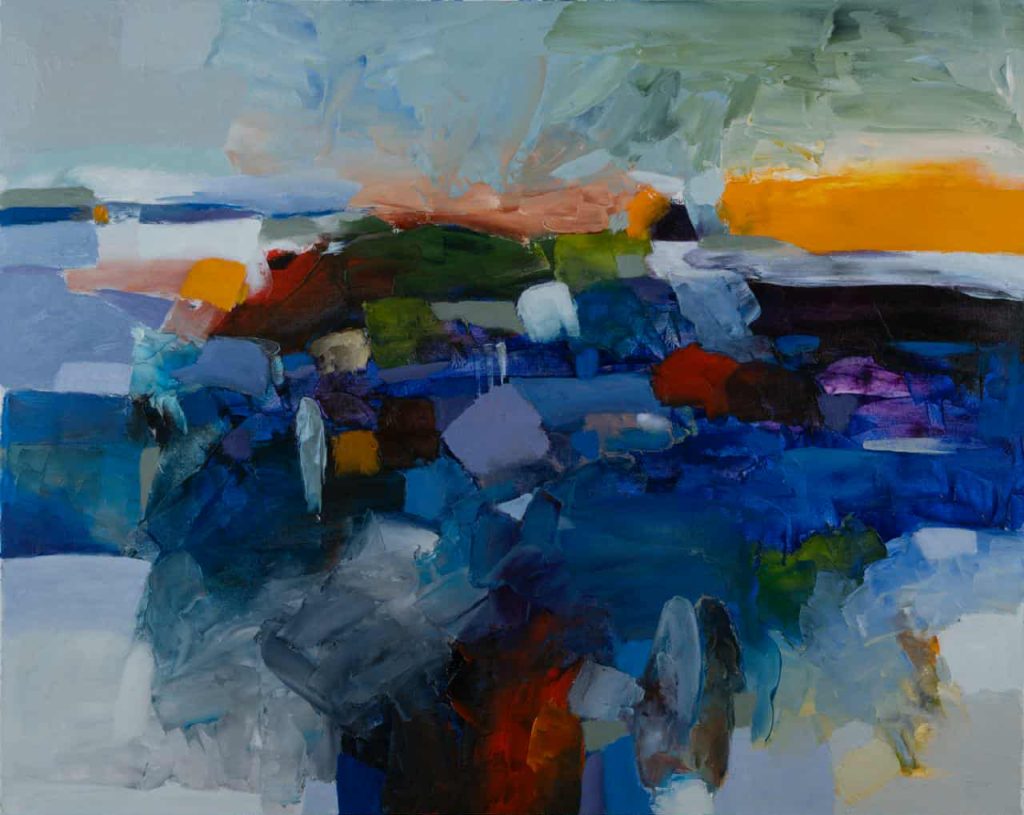 كما تتداخلُ الألوانُ لا على سطحٍ واحدٍ فقط، بل عبر طبقاتٍ شبه شفافة تمنحُ اللوحة عُمقًا زمانيًّا، كما لو كانت تحمل سجلًا بصريًّا للتحوّل.