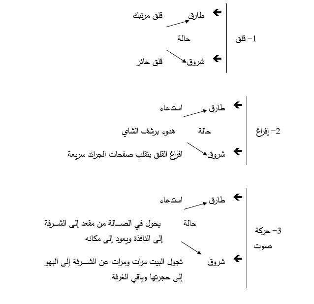 كما تنحو الكاتبة إلى استثمار (تقنيات تيار الوعي) في استدعاء مكان بهيجة الأول البحر ومن ثم تفسح أفق التداعي لاستيعاب التفاصيل الأكثر تعبيرًا عن الوجدان البحري واستظهار جدله الذهني في مفردات الحياة اليومية البسيطة التي تَنُّم عن معنى أبلغ تأكيدًا على نزوع تلك الشامية إلى كل ما يجعل إلى دفئها العائلي وحمى رابطة الأمومة الذي يخترقه منفى أم صالح عندما تسترجع ذاكرتها فصولاً من ذلك التنافر الضدي بين وجداني (البحر والصحراء) في صيغ مظهرية بسيطة تنطلق من أعماق نفسية دفَّاقة (مازالت تذكر بحرقة مرطبانات المكدوس والزيتون المعقود التي كانت تصلها من الشام من أمها بين فينة وأخرى فتصفها على الرف الخارجي لغرفتها فتقوم أم صالح بالتخلص منها بحجة أنها تفسد الممر برائحة الثوم”([24]).