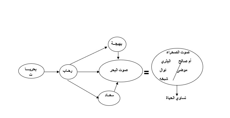 إنَّها النفس المحملة بالوصف والسواد المثقل بالمرارات، المفارق بين بياض بهيجة وجذورها البحرية ويلقي بظلاله على وجنتها البيضاء وهو بداية انسراب الدلالة النصية الرمزية في المتن السردي.