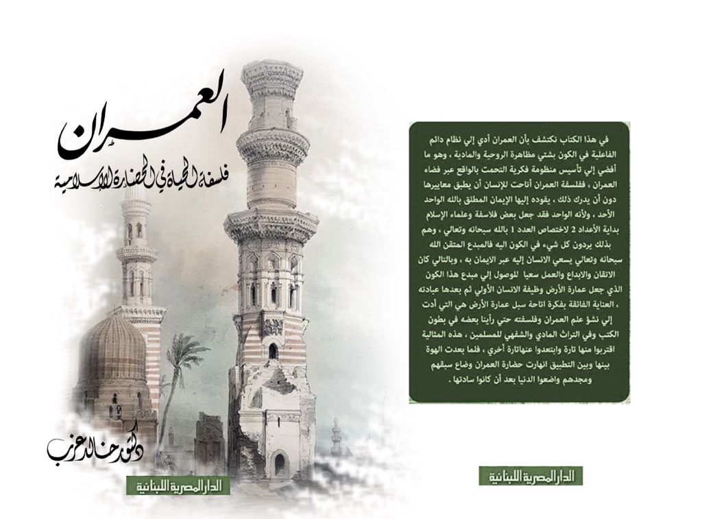 صدر في القاهرة عن الدار المصرية اللبناينة كتاب (العمران .. فلسفة الحياة في الحضارة الاسلامية ) من تأليف الدكتور خالد عزب ، الكتاب الذي يقع في خمسة فصول يعيد تأسيس علم العمران من جديد حيث يذهب مؤلفه إلي أن هذا العلم وجد في الحضارة الاسلامية منذ العصور المبكرة ، فغاص في كتب التراث والأثار والروايات والوثائق الحجج المؤلف ليستخرج هذا العلم ويعيد بناؤه، كأن علم العمران في حاجة إلى تأسيس ينطلق منه إلى فهم أعمق لمعطيات الحضارة الإسلامية يحيى قيمتها ويثمن منجزاتها، وننطلق منه نحو المستقبل.