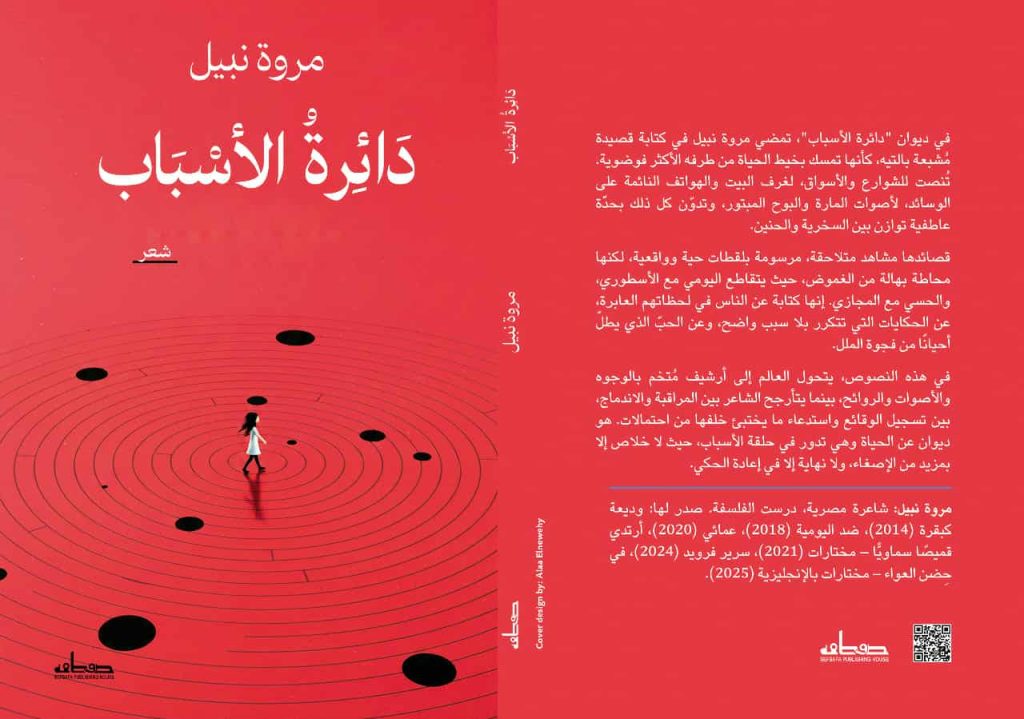 في «دائرة الأسباب» لمروة نبيل، ثلاثة وأربعين قصيدة تتقاطع فيها المدينة والطبيعة، والحياة اليومية مع التأمل الكوني، حيث الحب والموت والصمت والصخب يتحركون في شبكة واحدة لا تنتهي. كل قصيدة دائرة من الأصوات، الأجساد، والأحداث، كل شيء مرتبط بدائرة لا تنتهي، كل سبب يولد أثرًا، وكل فعل يترك أثره فينا.