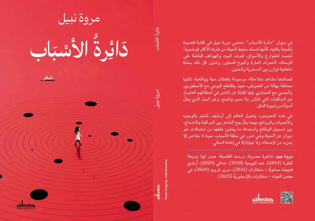 ديوان «دائرة الأسباب» لمروة نبيل تجربة شعرية وفلسفية متكاملة، حيث تتشابك اليوميات مع التأمل الكوني، والأنوثة مع الطبيعة، والموت مع الحياة، والزمن ليس خطيًا بل دائري.